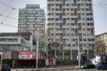 Na zakończenie jeszcze dwa budynki z centrum Wrocławia, oba oryginalne. Pierwszy, trzonolinowiec, że względu na konstrukcję i drugi to mezonetowiec składający się z dwupoziomowych mieszkań, zresztą wydzielonych również w podziale elewacji. Budynek ten jest chyba w trakcie remontu, albo coś z tym remontem poszło nie tak, jak widać os strony klatek schodowych.